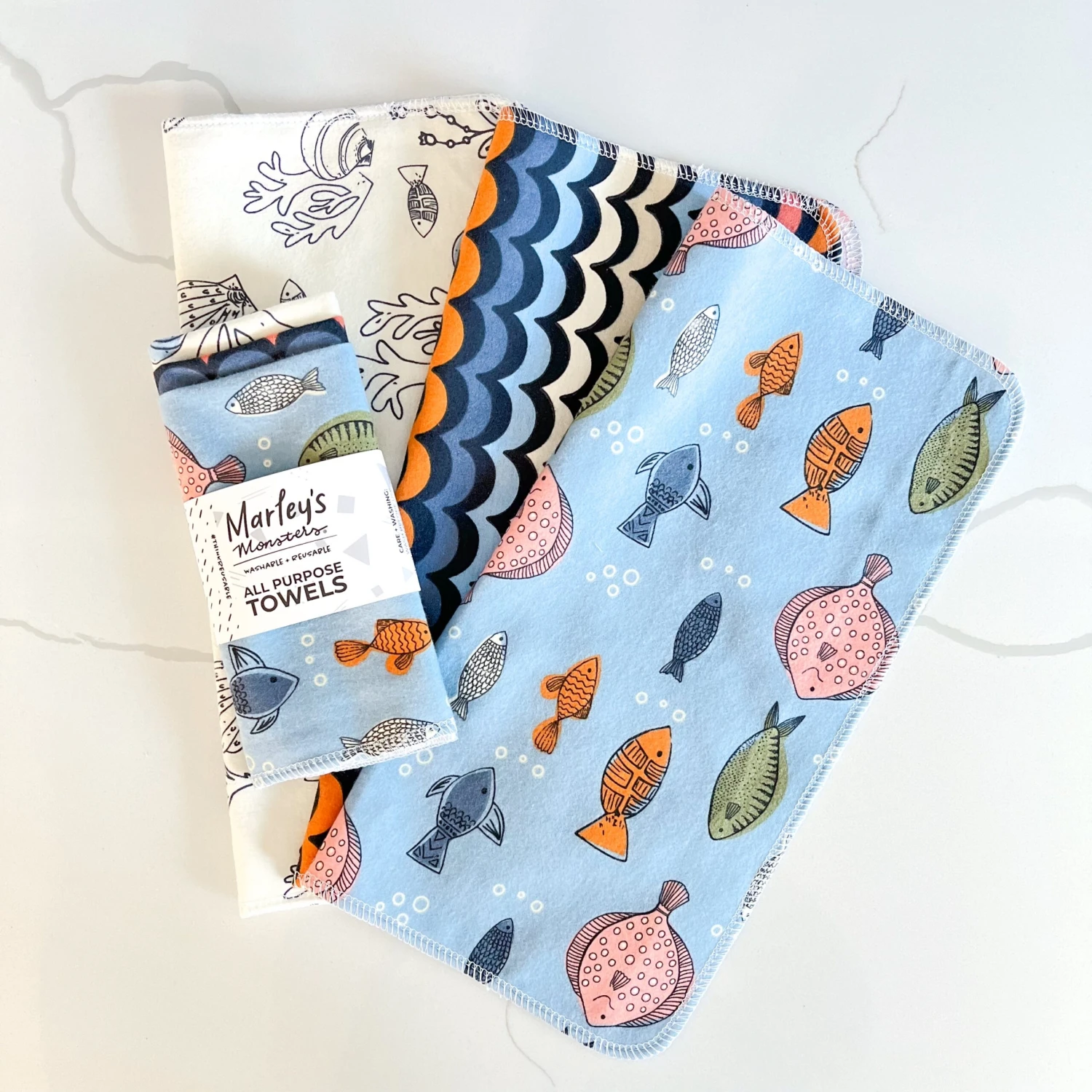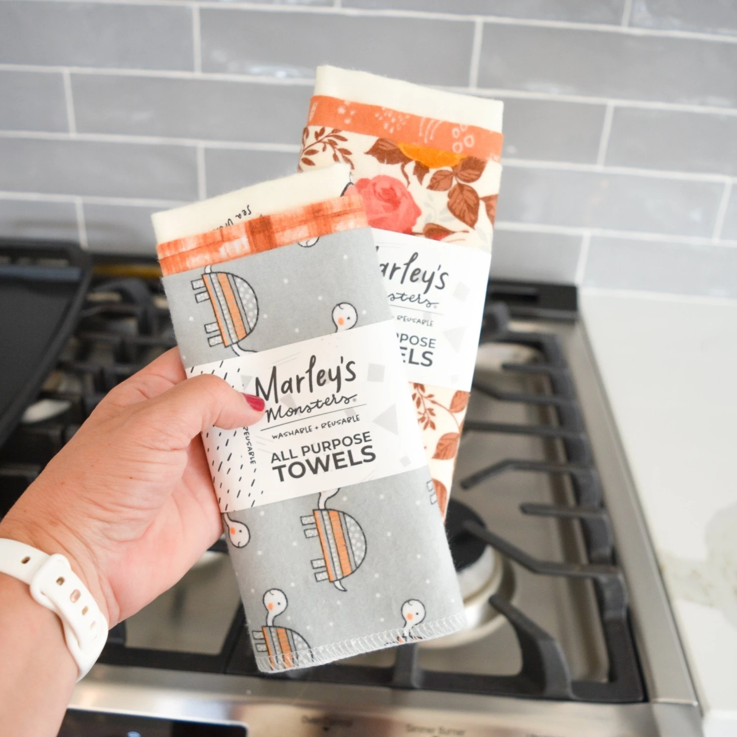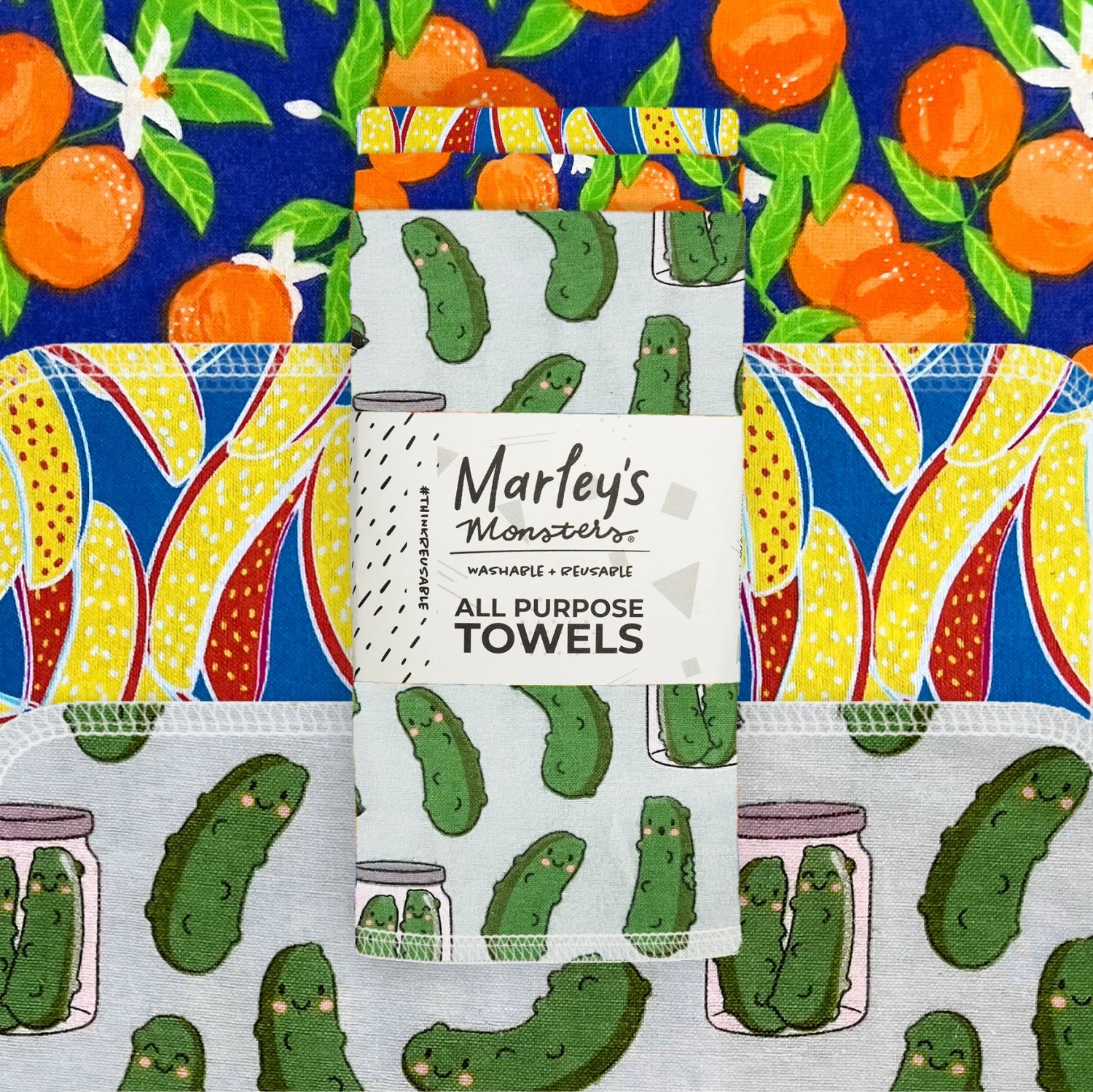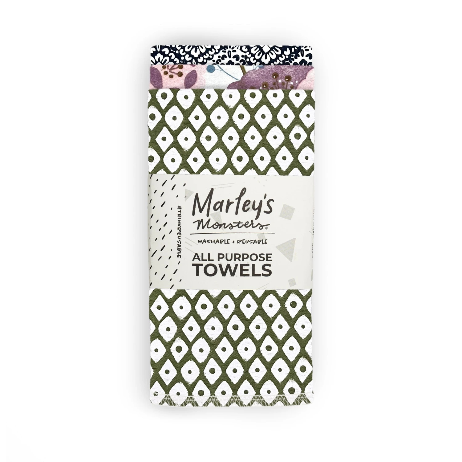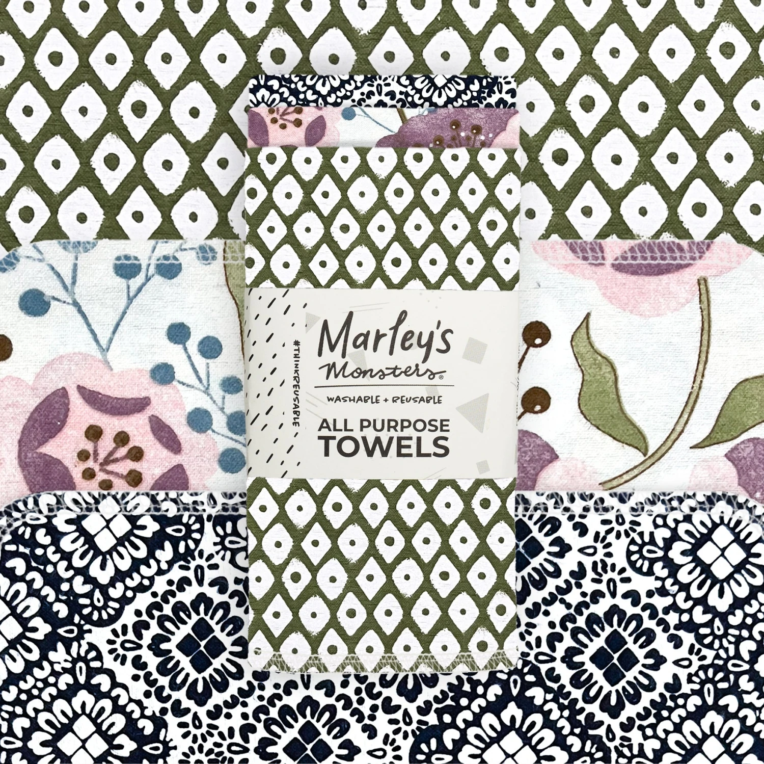 All-Purpose Towels are a larger than our UNpaper® Towels and perfect for bigger jobs. This set comes with 3 different print All Purpose Towels in the mix of your choice. Made from natural cotton fiber, the All Purpose Towel offers a sustainable alternative to microfiber cleaning cloths.