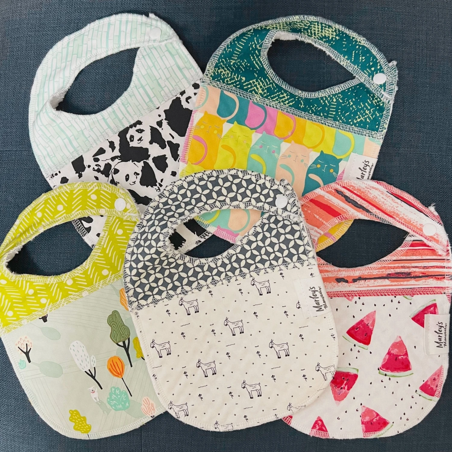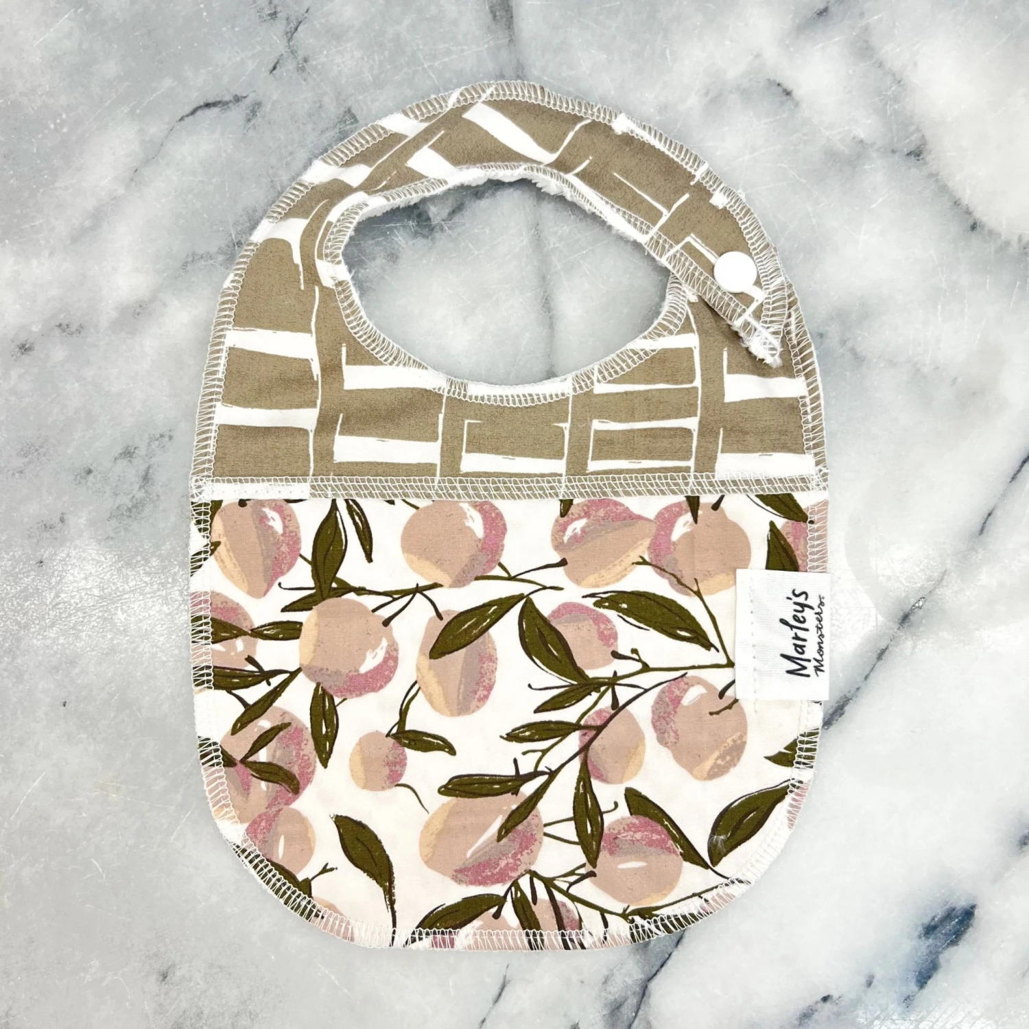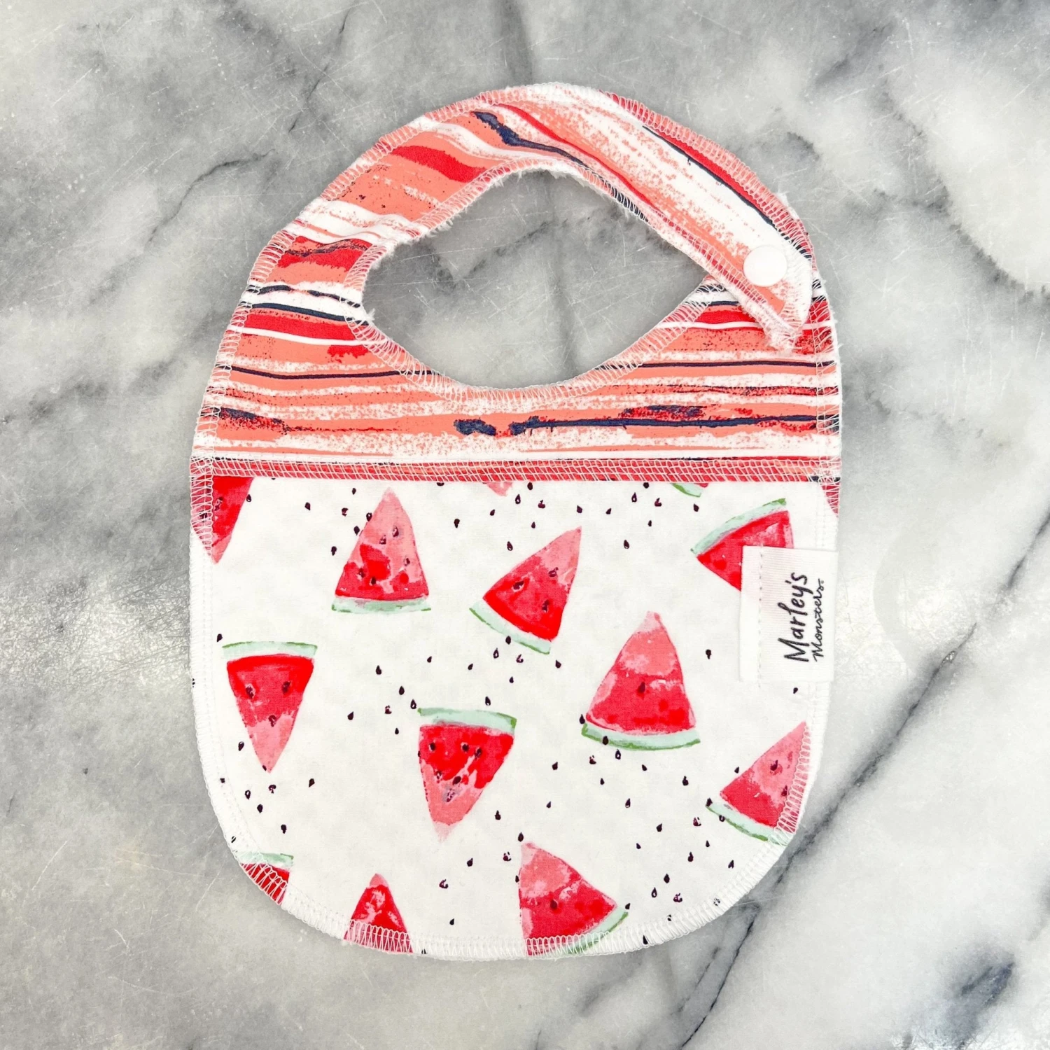 Protect your little monster while they eat with this double-sided bib. The front is made from two complementary 100% cotton prints and the back side is lined with a soft & fluffy 100% polyester fabric to wipe your little monster’s face after eating and keep shirts clean. Bibs are great gifts for the expecting mama! Choose your favorite print from the swatch menu.