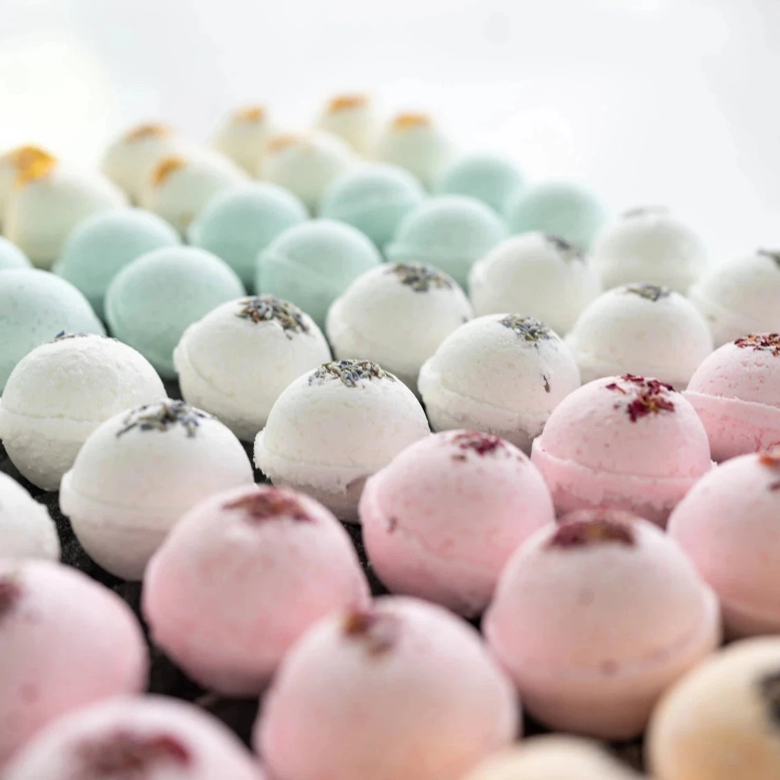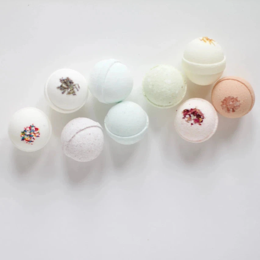This set of 5 Bath Bombs comes in a macaroon style gift box. Each Bomb is approximately 2oz and come in Lavender, Lemongrass, Eucalyptus, Pink Grapefruit & Rose scents.