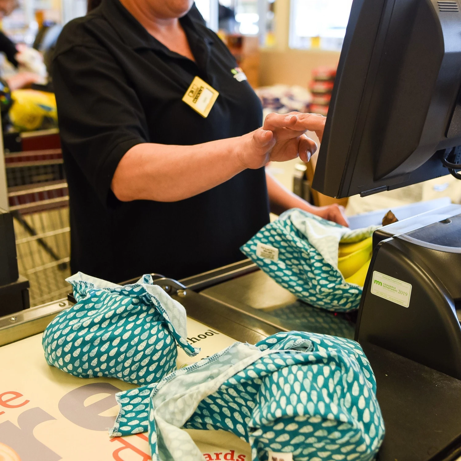 Bento Bags feature a tie top closure which is great for storing a variety of goodies! Use them for bulk grocery shopping, packing lunch, or try them for separating socks and other things while traveling. Bento Bags are light-weight and compact, and the TARE weight (actual weight of the bag on its own) is stamped on the label, so you don’t have to pay for the weight of the bag when bulk shopping.