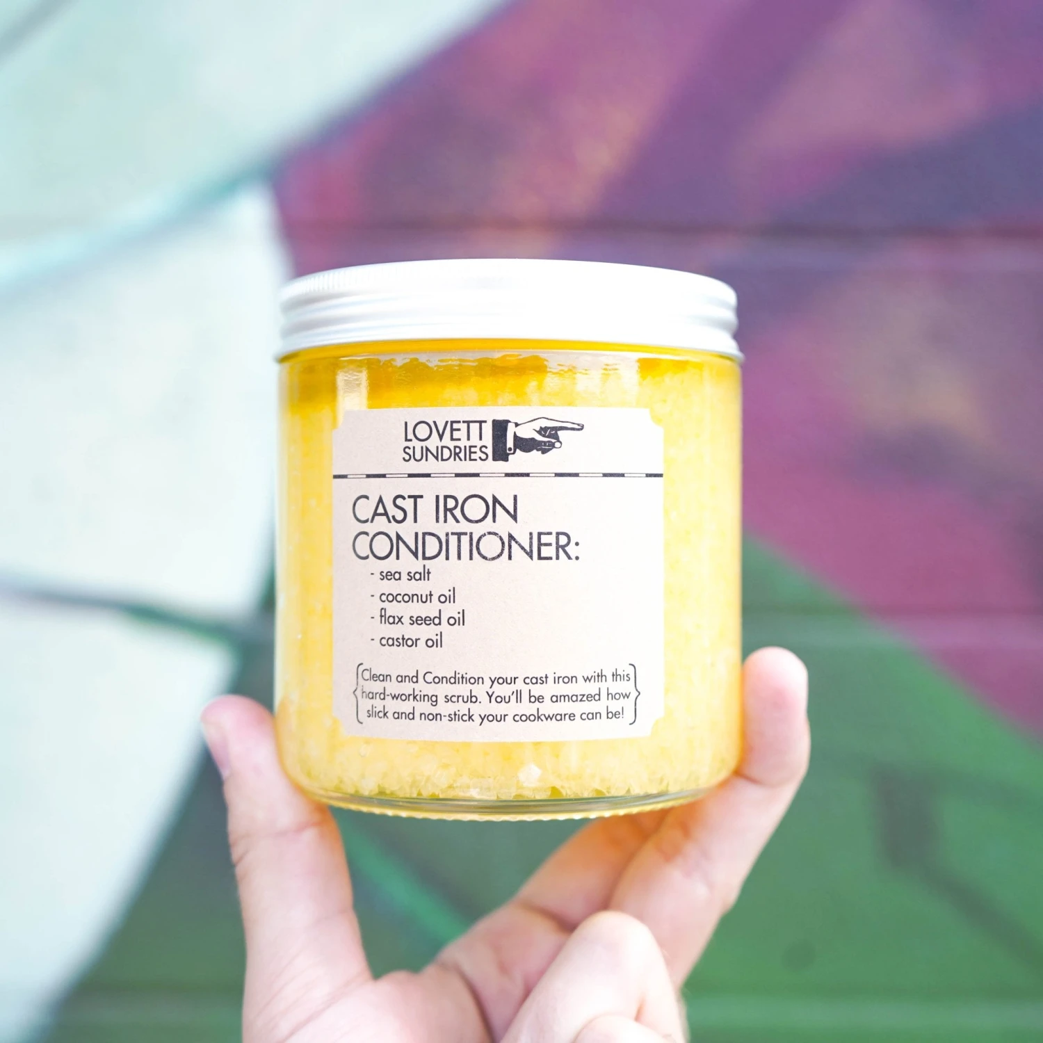 Have you been wanting to use grandpa’s old cast iron skillet, but feel daunted by the seasoning process? This hardworking scrub makes it incredibly easy to clean & condition your cookware with every use.