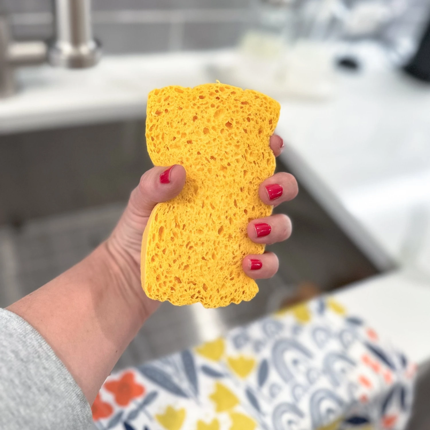 CARE + USE: Upon first use, wet Sponge with water to expand. Allow to dry thoroughly between uses. Sponge will break down over time and can be added to your compost.