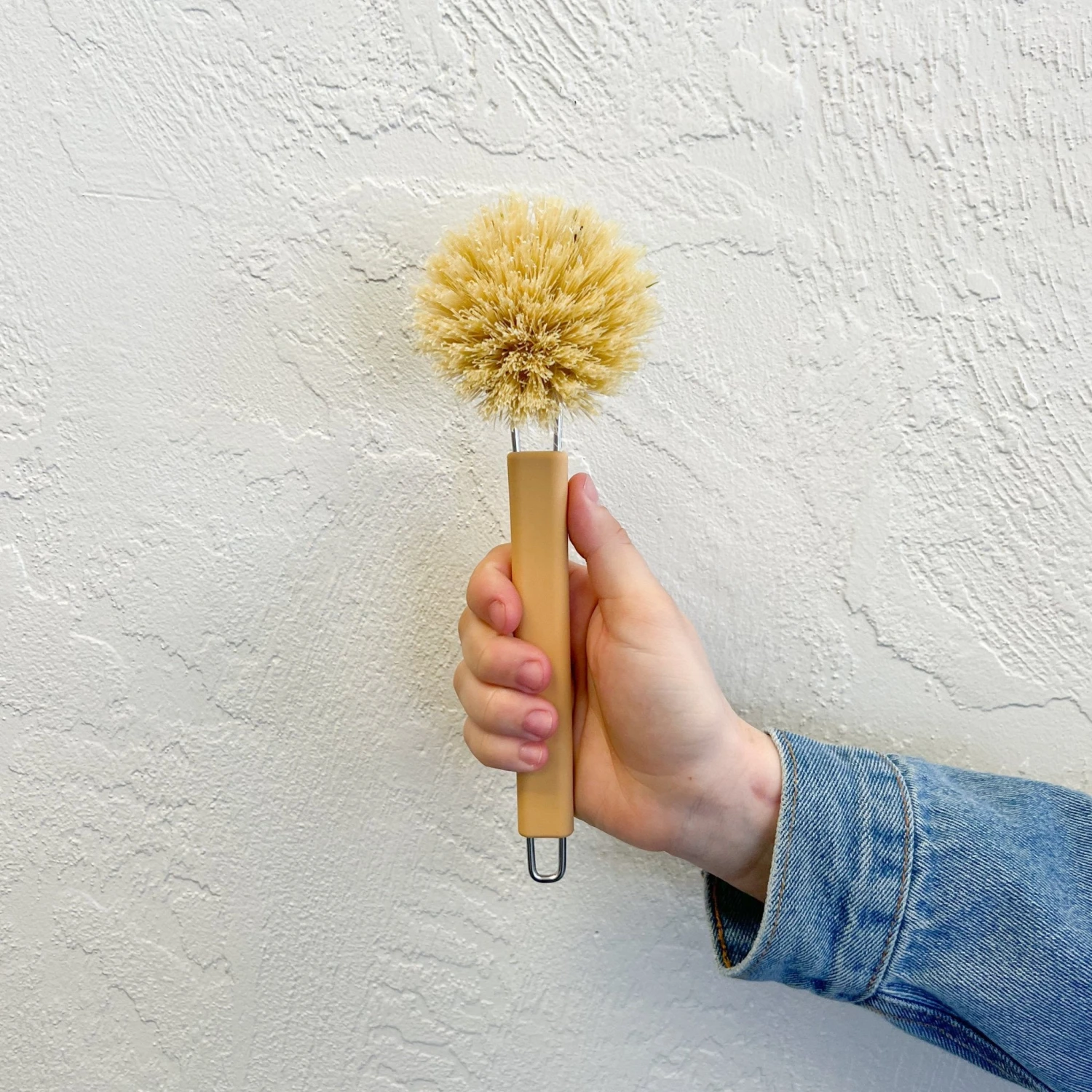 Ditch those plastic cleaning utensils! These removable head dish brushes feature natural tampico** bristles and silicone covered stainless steel handles. The head is removable so you can easily replace the head as it wears. (approximately 9″ long). Additional heads sold separately.