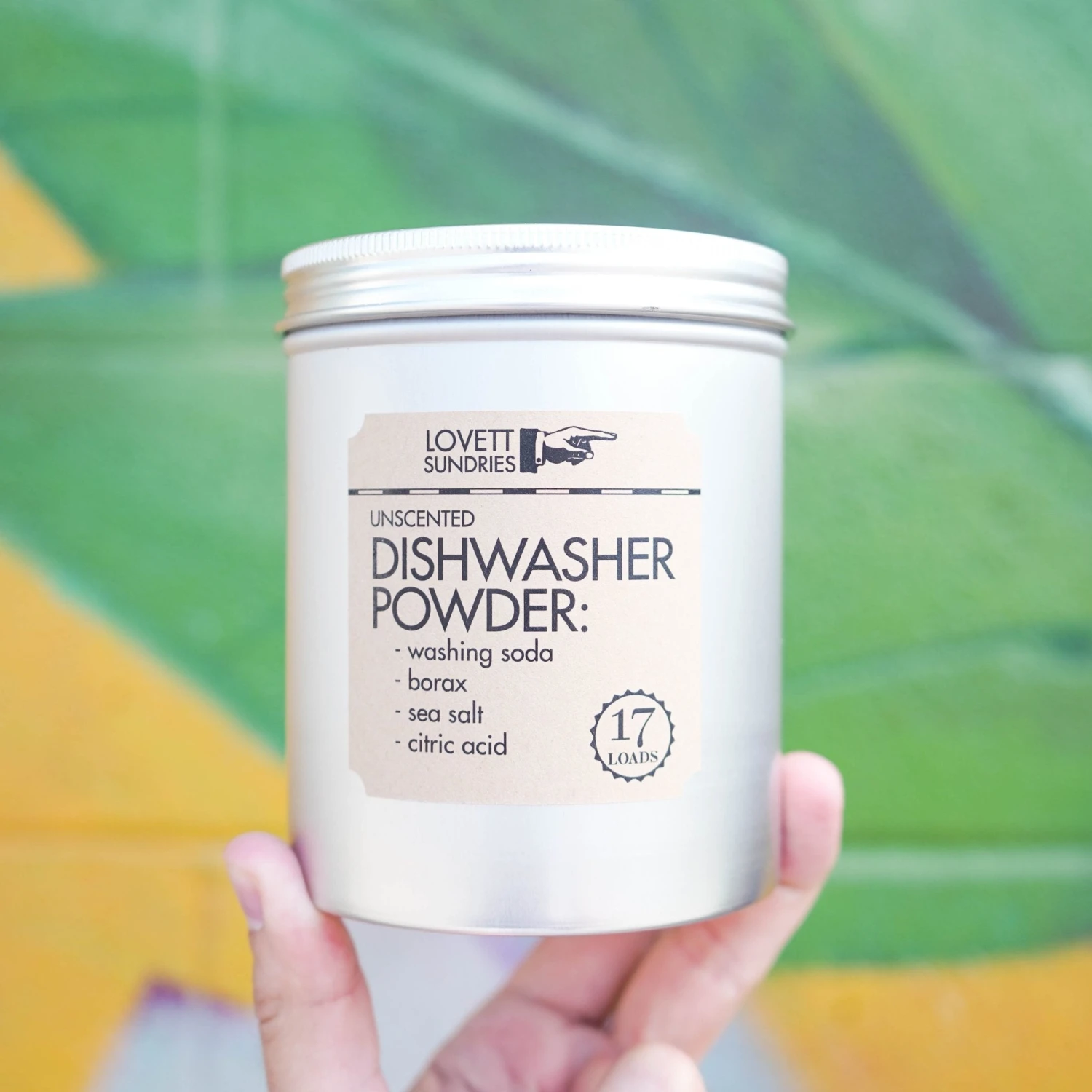 For dishes so clean you can eat off of them, how about cutting out all the creepy chemicals? The main ingredients in this dish-washing powder from Lovett Sundries, are washing soda & borax.