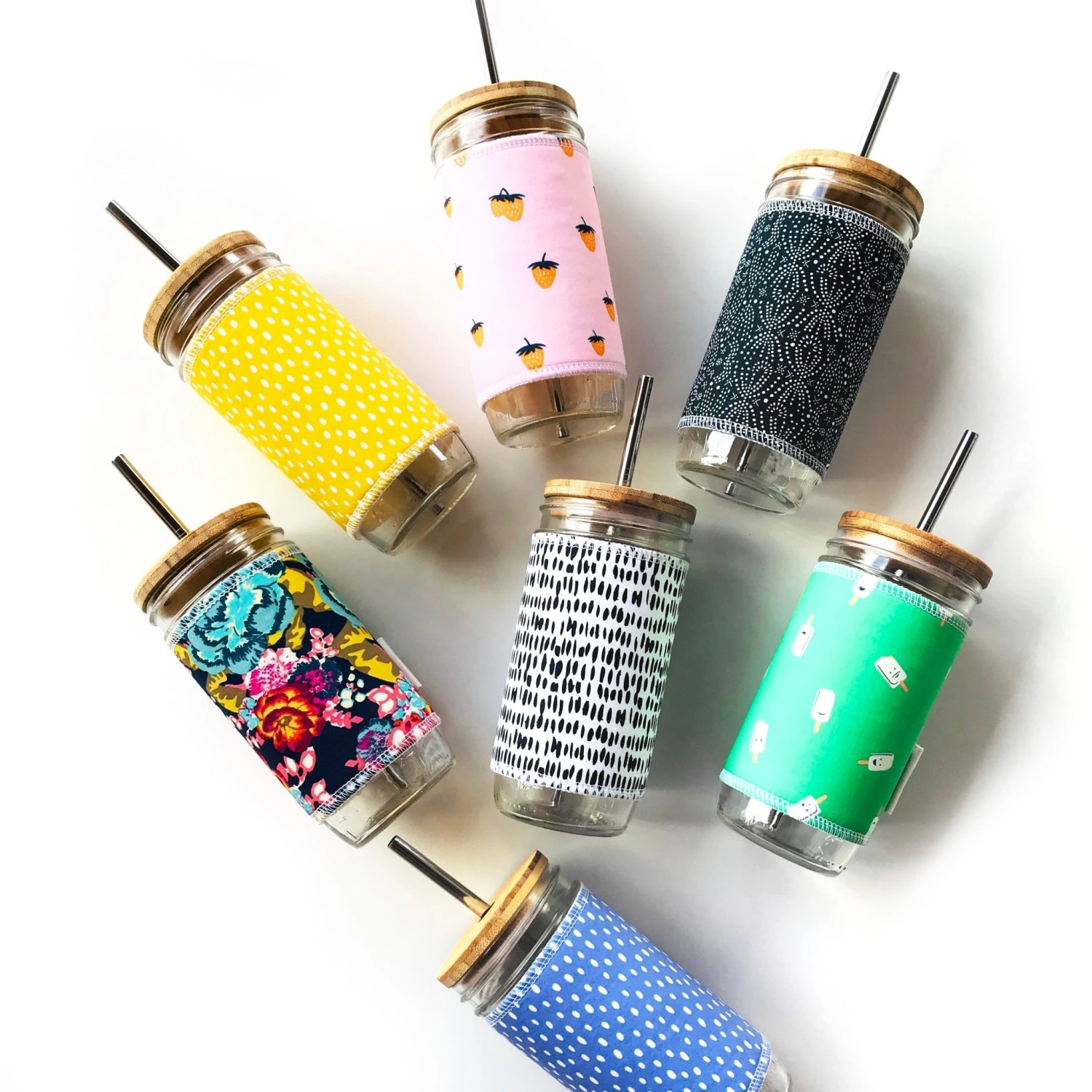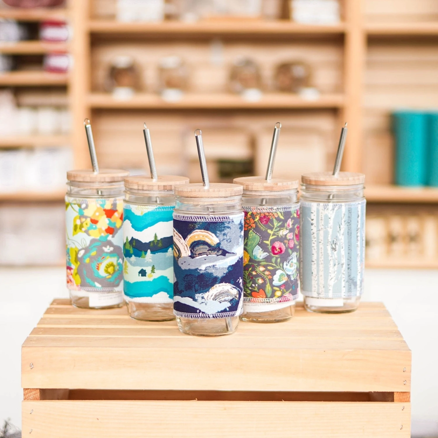 Stay hydrated and keep condensation at bay with these super fun Glass Tumbler Sets. Have your own 24 oz wide mouth canning jar? Opt for the Fabric Sleeve ONLY.