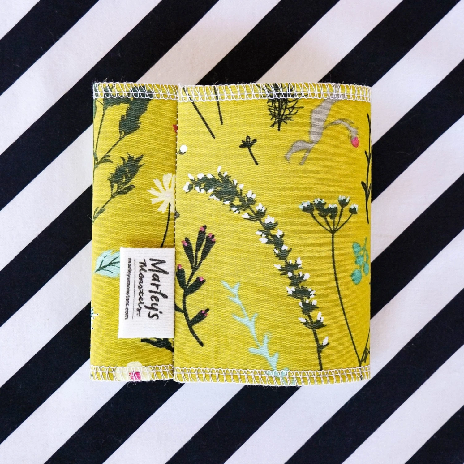 Fabric Sleeves are not adjustable and will only fit on a 24 oz (pint & a half) wide mouth canning jar. Each cotton fabric sleeve is lined with fleece to control condensation and measures almost 5″ tall for optimal holding space.