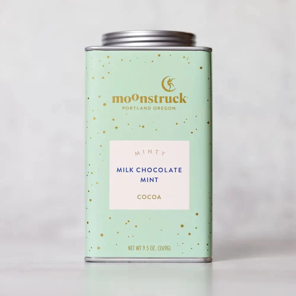 Indulge in a variety of creamy and flavorful hot cocoa tins with Portland made, Moonstruck Chocolate. Offered in three delightful varieties. Add your desired amount of cocoa powder to hot water or milk of choice!