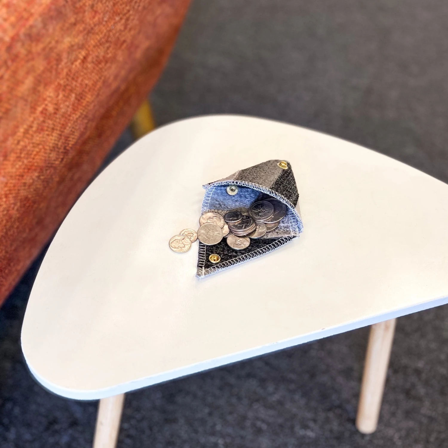 The Scrap Felt Coin Purse is an upcycled and eco-friendly solution for carrying coins and other trinkets. Its snap closure ensures security, while its fold-up design makes it highly portable and its easy-open design lets you fully open the coin purse. Crafted from scrap felt, this purse is forged from recycled materials, making it a practical solution for any eco-conscious consumer.