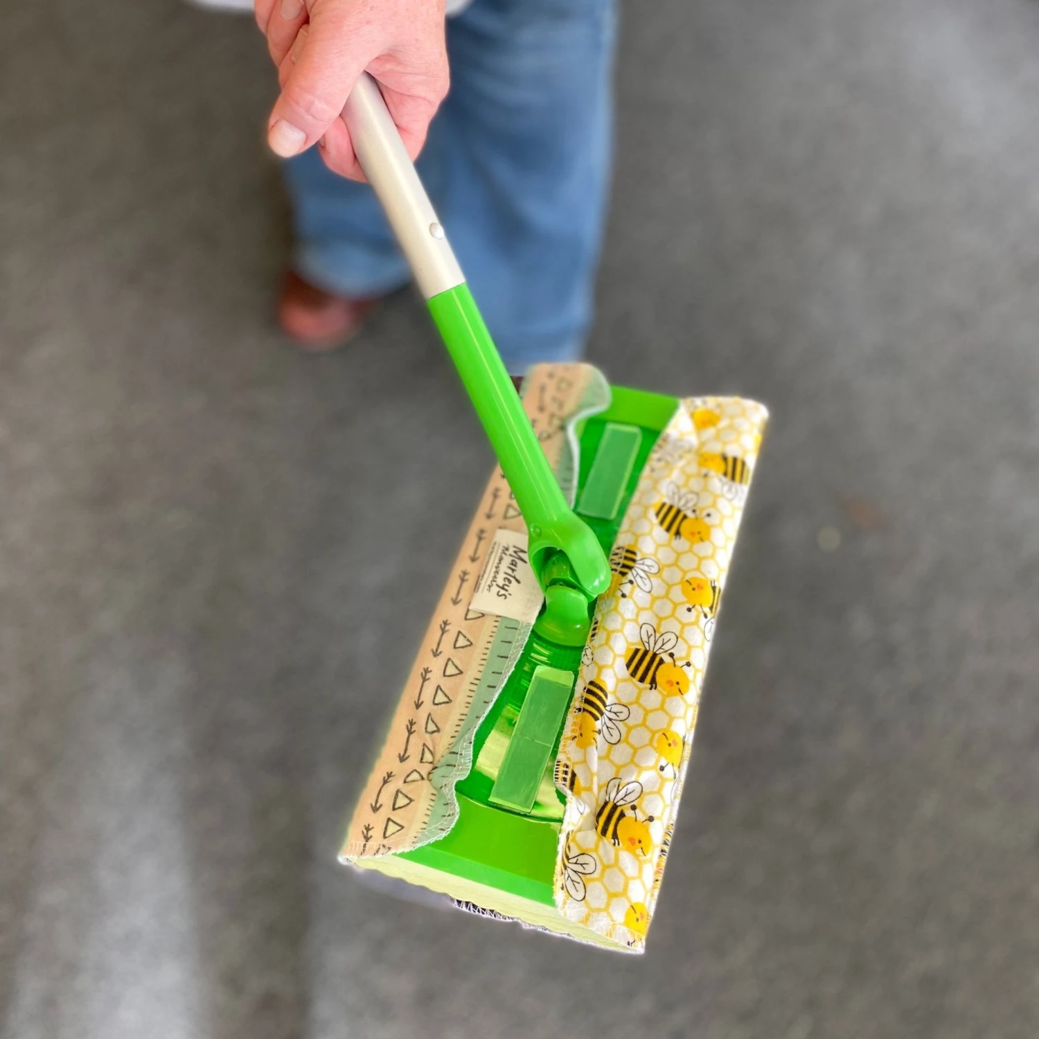 Finally, a plastic free, washable and reusable alternative to disposable mop head sheets! Marley’s Monsters Scrap Felt Mop Pads are made with a thick and absorbent fabric that is comprised of multiple layers of felted cotton flannel scraps that would have otherwise gone into the waste stream. Single ply flannel “wings” on on the long edges of the felted Mop Pads center can press into most standard size mop heads. Use wet or dry!