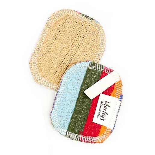 Check out our double sided Scrap Felt Scrubbers made entirely from upcycled material. Multiple layers of scrap flannel strips are felted together to create a new, absorbent fabric we call Scrap Felt. We back this with rugged burlap from upcycled coffee bags to create these handy, zero waste Scrubbers.