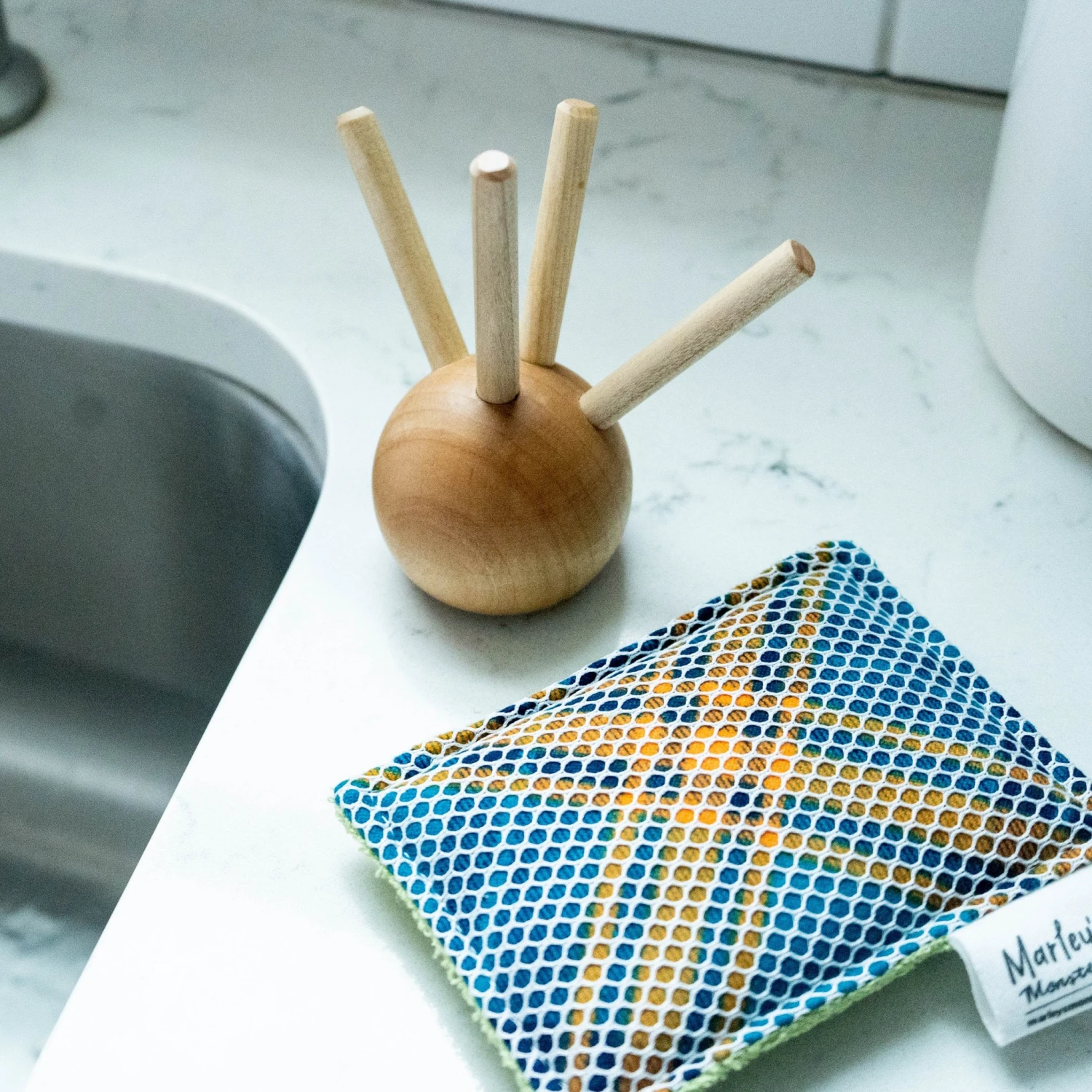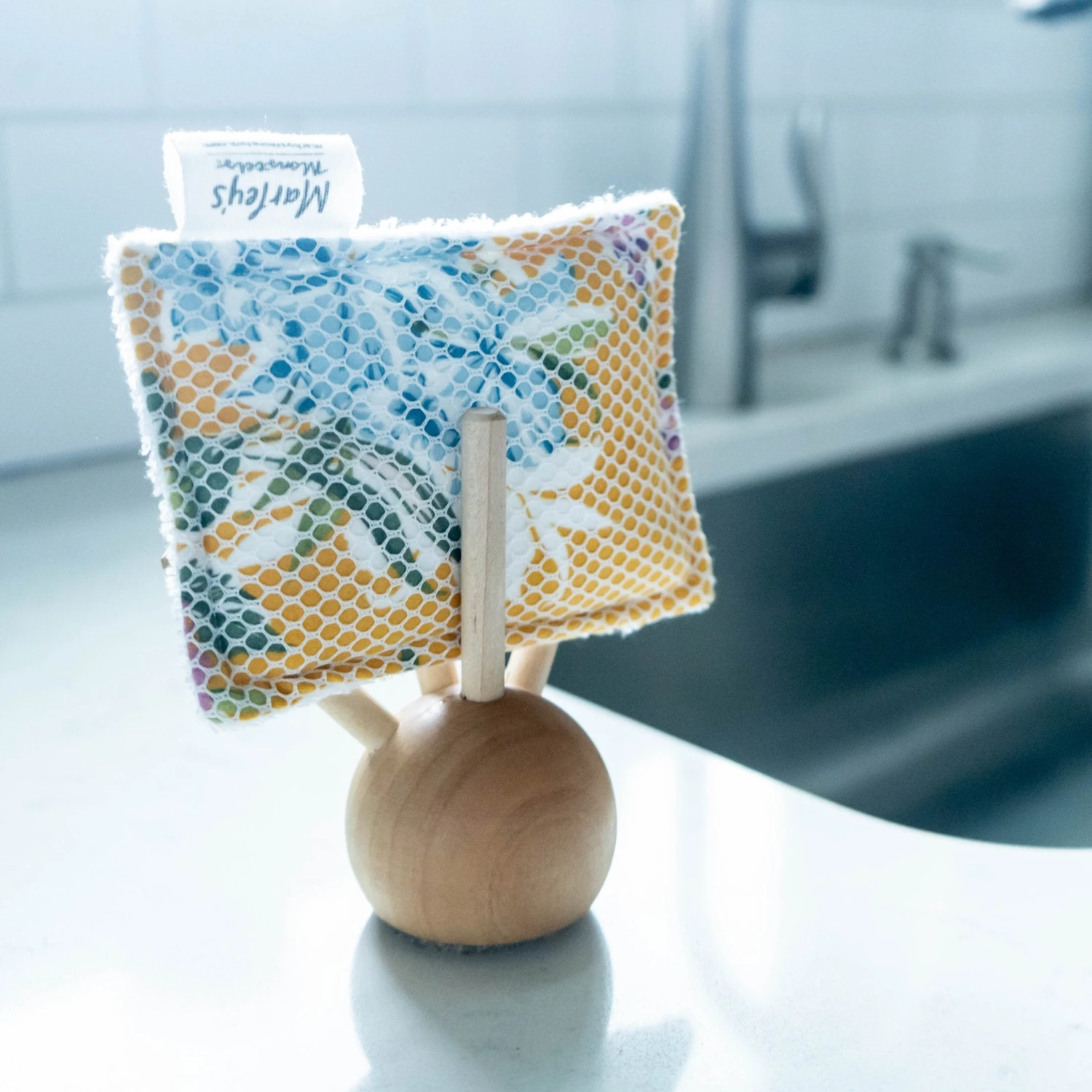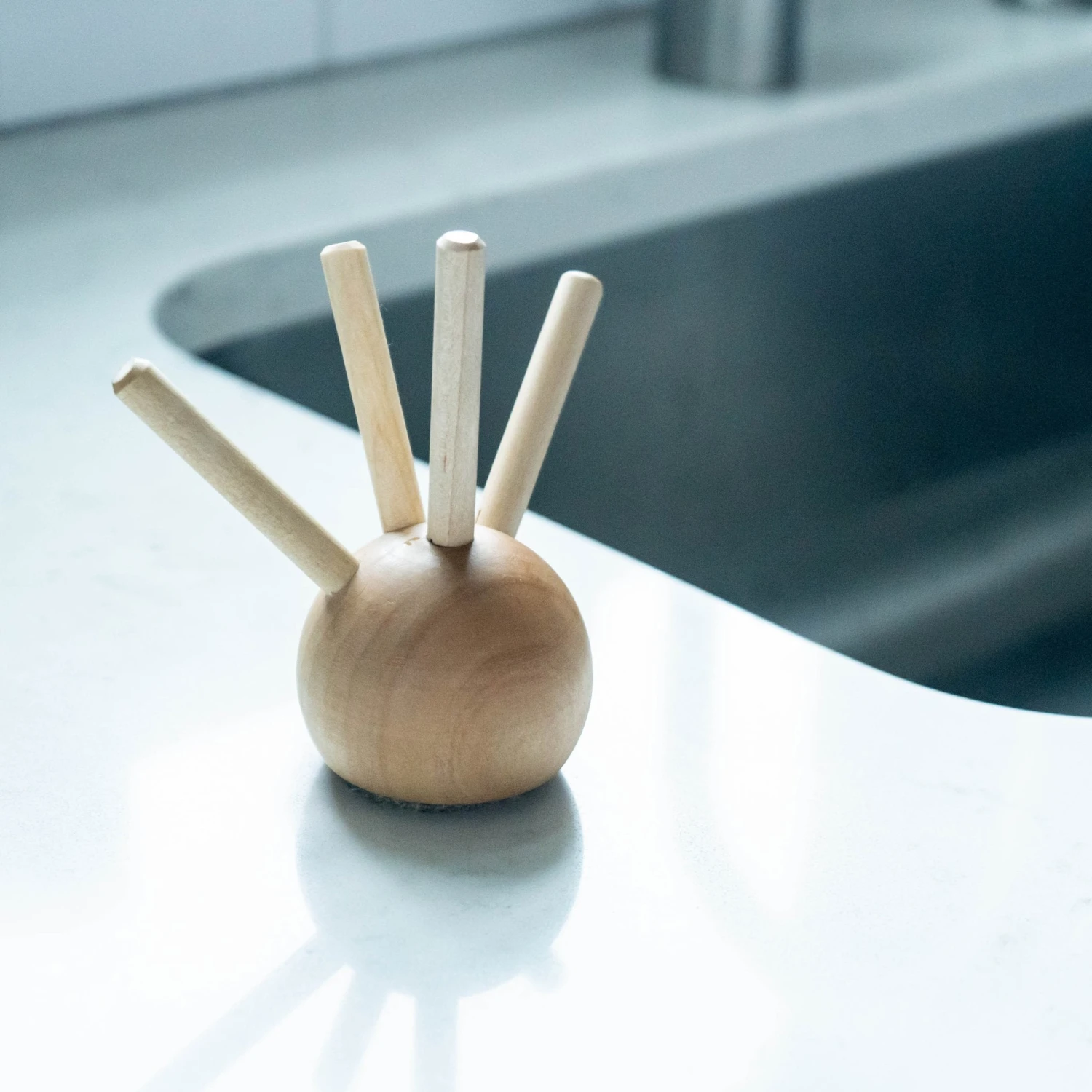 Meet the Sponge Bug! Our unique sponge holder is 100% wood and serves as a unique way to dry and show off your Washable Sponge and other reusables. Made from USA grown hardwood with 4, (3″) prongs extending from a 2.5″ wooden dome. Finished with a felt pad on the bottom. Total assembled height is 4.5″ tall.