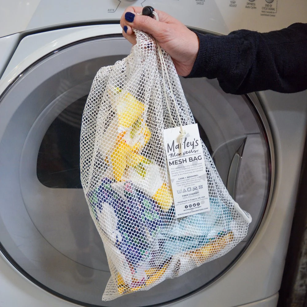 - Large Mesh Laundry Bag measures 12″ x 15”