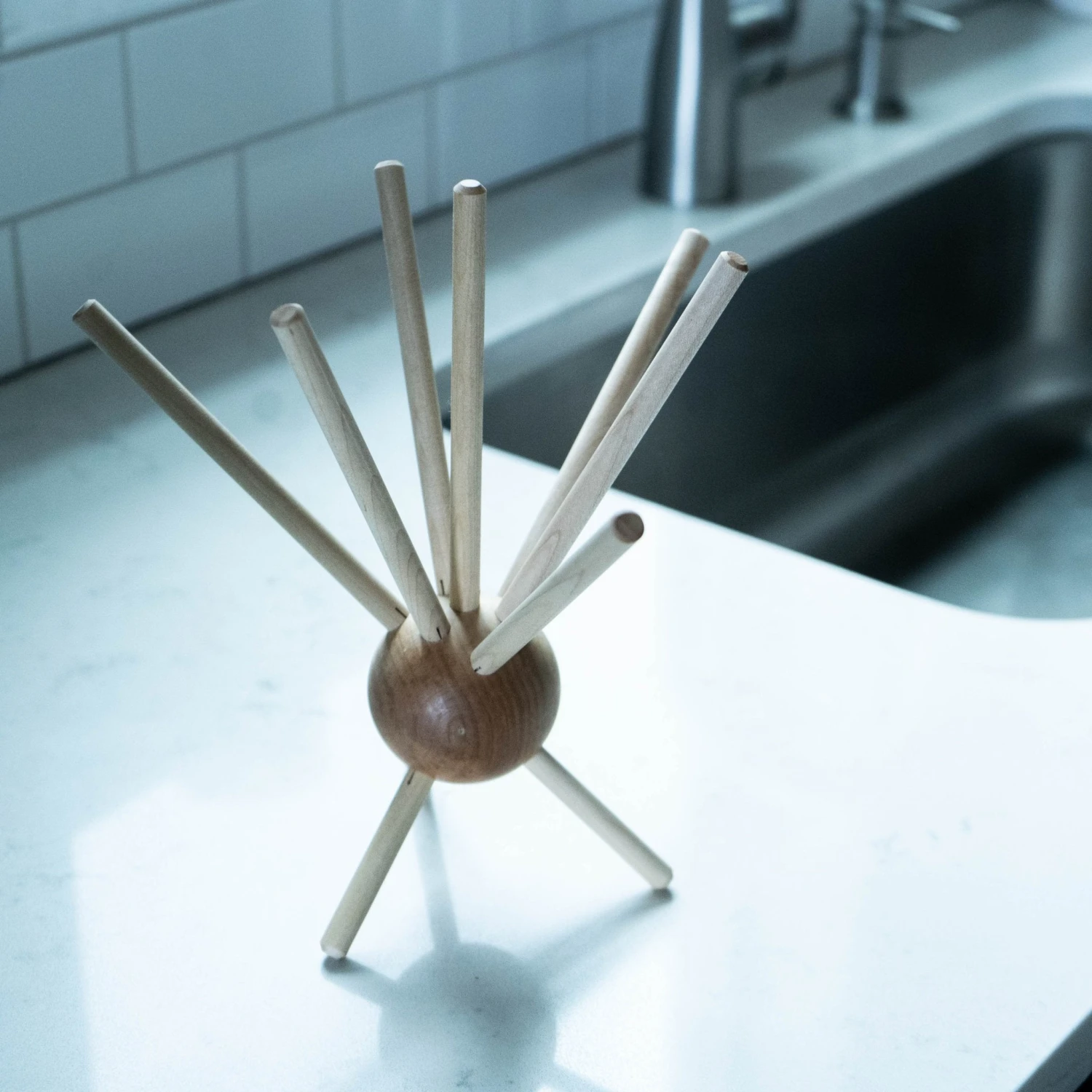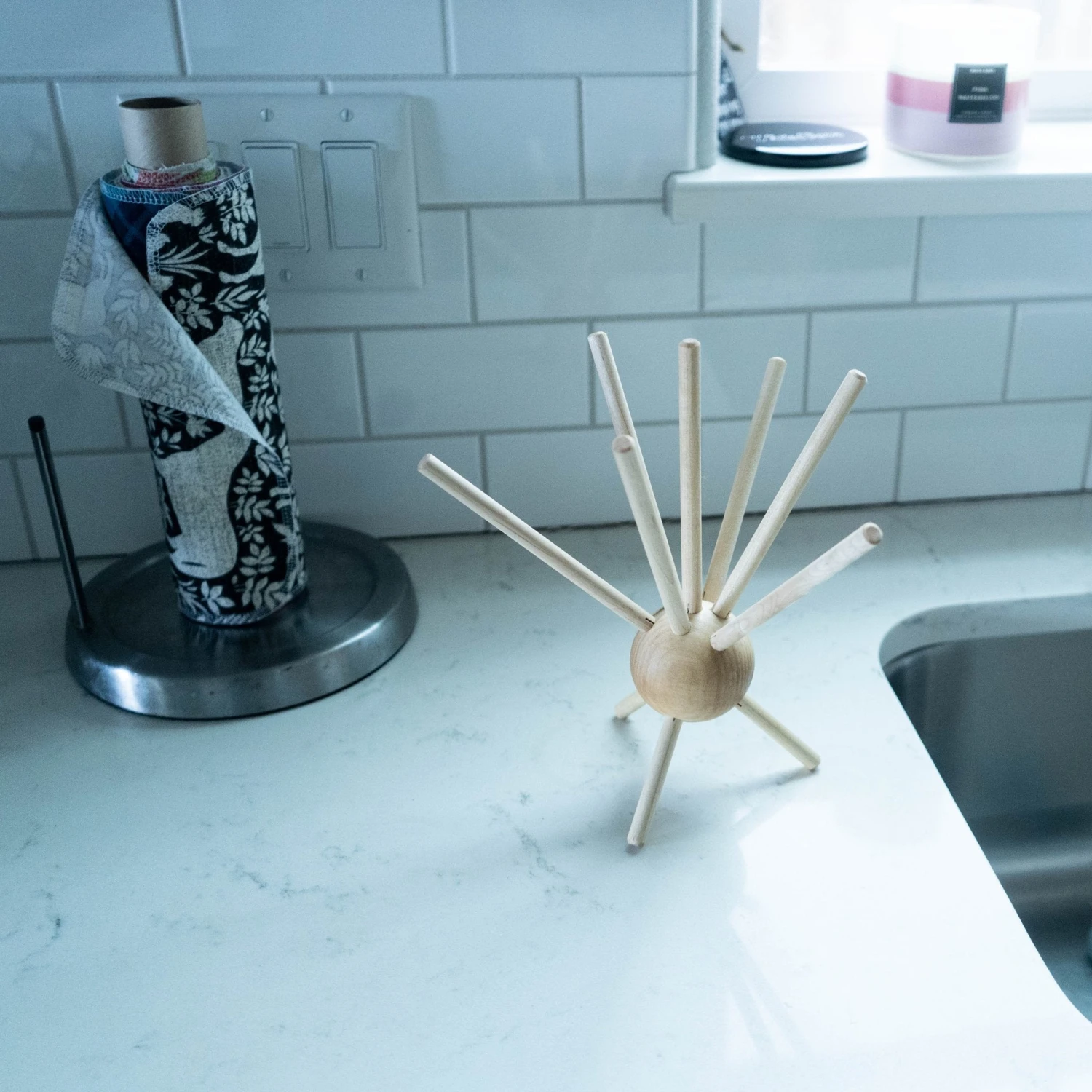 Meet the UNpaper® Bug! Our unique drying rack is 100% wood and provides a fun & functional way to dry and show off your UNpaper® Towels and other reusables. Made from USA grown hardwood with 3 (3″) legs and 7 (6″) prongs extending from a 2.5″ sphere. Total assembled height is 9.5″ tall.