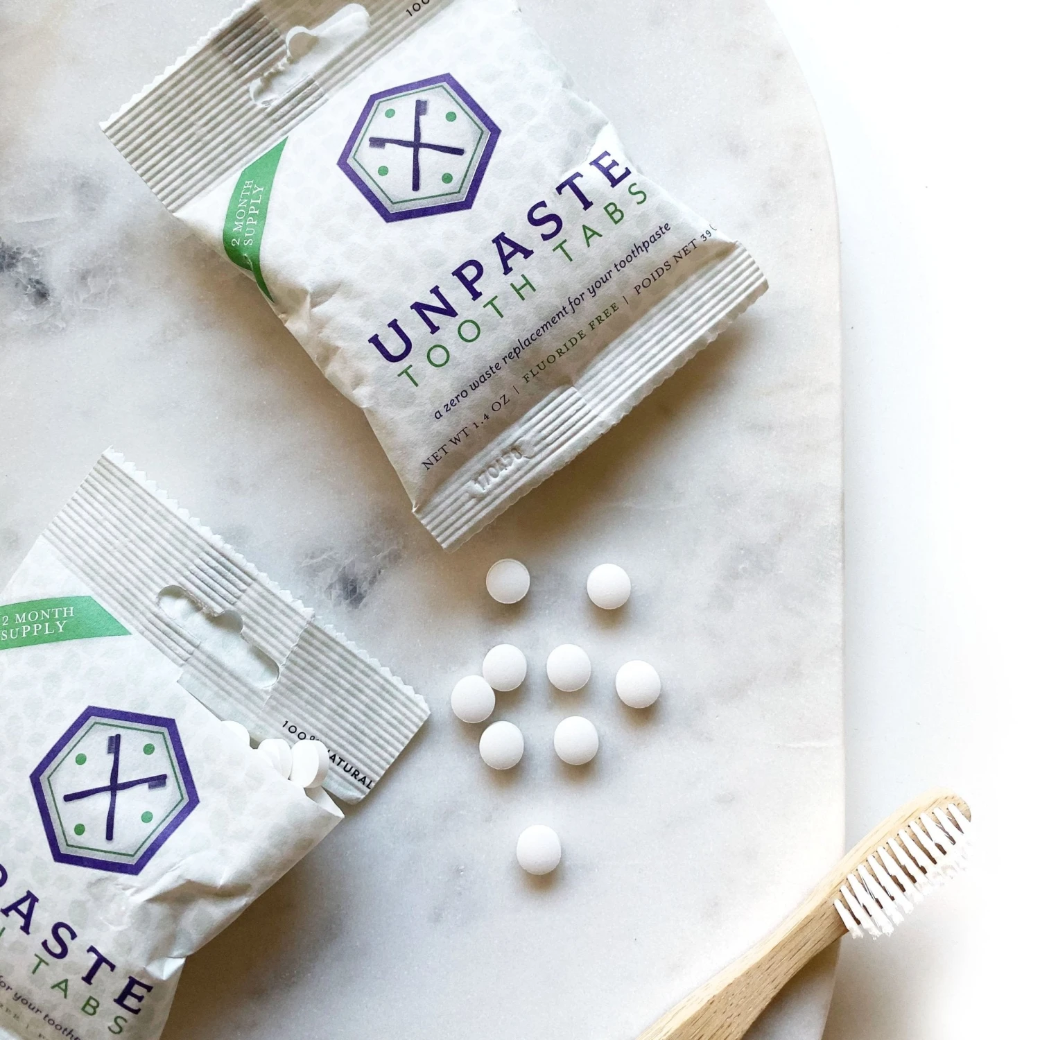 What’s better than toothpaste? UNpaste Tooth Tabs! No more tube, no more squeezing. Simply crush a tab between your teeth, wet your toothbrush and go to town. Tooth tabs are the ultimate zero-waste addition to your oral care routine. Plus, they travel well and help you measure your usage.