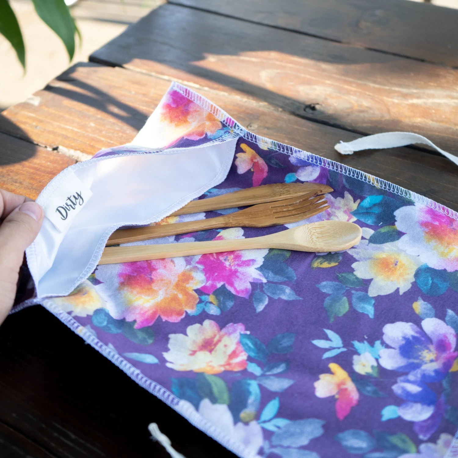 Fill this multi-use roll with silverware, art supplies, makeup or toothbrushes to manage your zero-waste lifestyle. Unroll it to create a sanitary surface to eat/work – anywhere!
