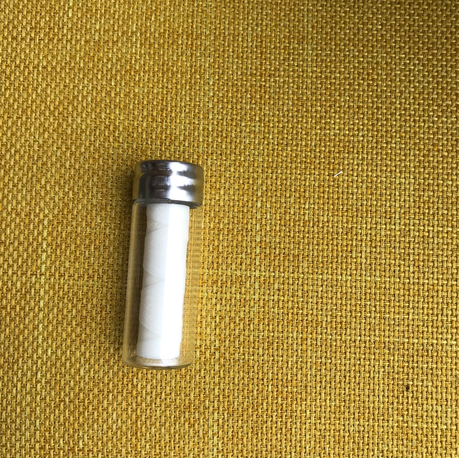 CORN SILK floss with a candelilla wax coating and natural mint flavor. 33 yard spool comes in a reusable glass jar.